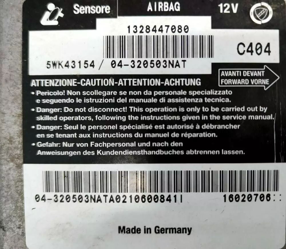 - Тип блока: Блок управления Airbag