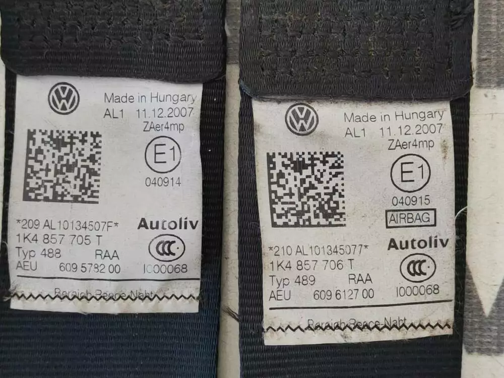 1K4857705T / 1K4857706T Ремні безпеки (передні, пара) VW Гольф 5