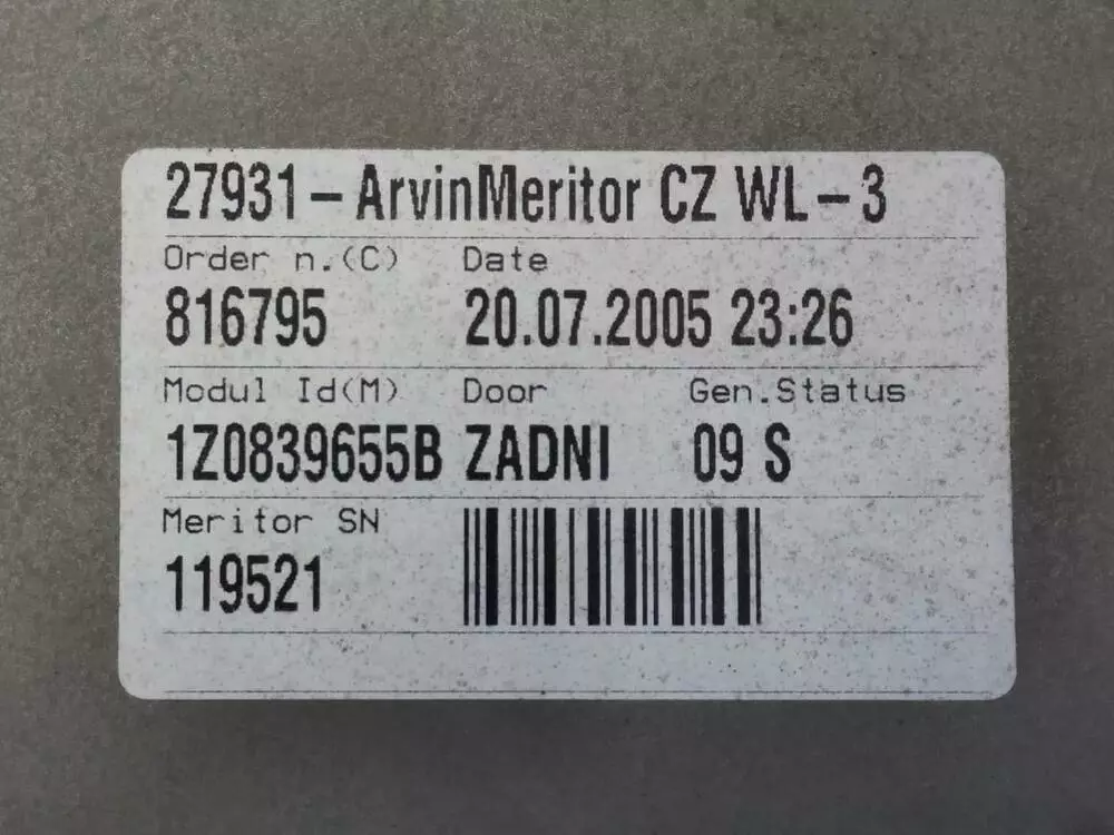 1Z0839655B Склопідіймач (лівий, задній) Шкода А5