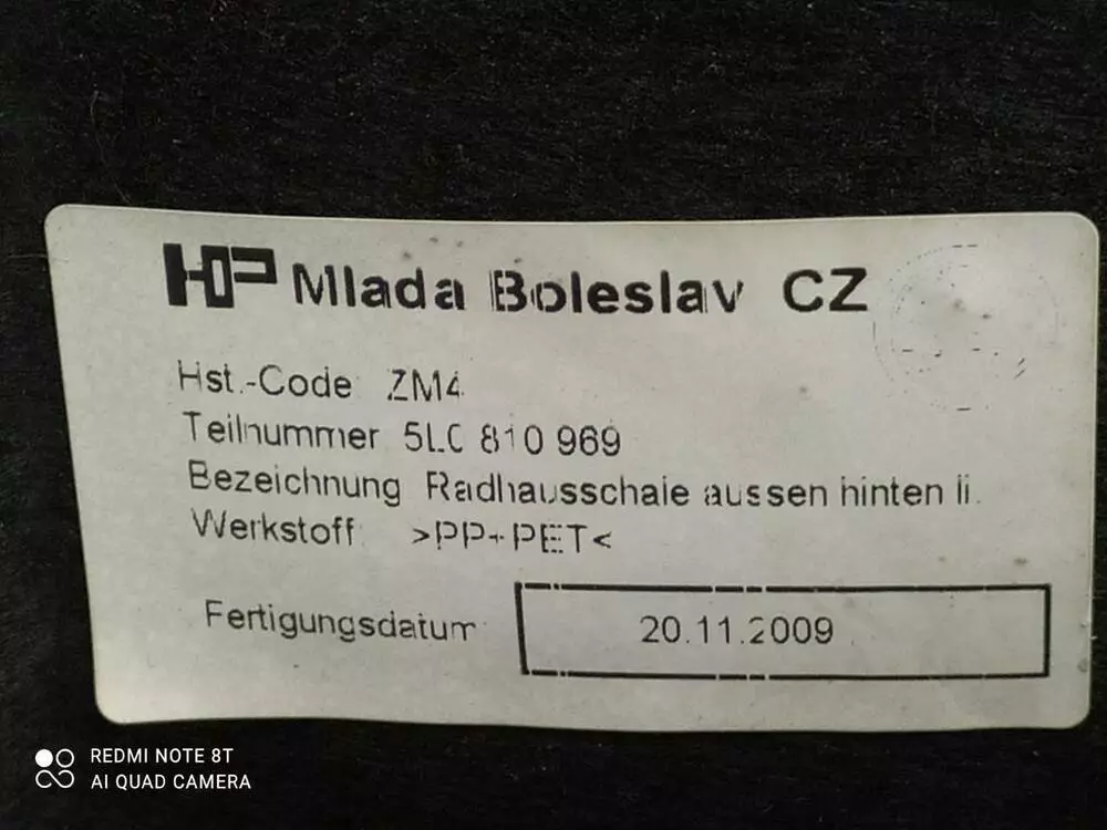 5L0810969 Підкрилок (лівий, задній) Skoda Yeti