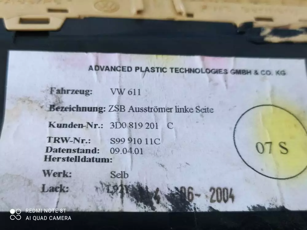 Дефлектор (лівий) 3D0819201C VW Фаєтон VW