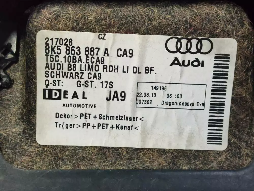 Обшивка багажника (ліва) 8K5863887A AUDI A4 B8