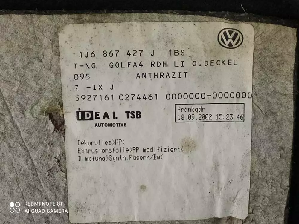 Обшивка багажника (ліва) Хетч Бек 1J6867427J VW Гольф 4