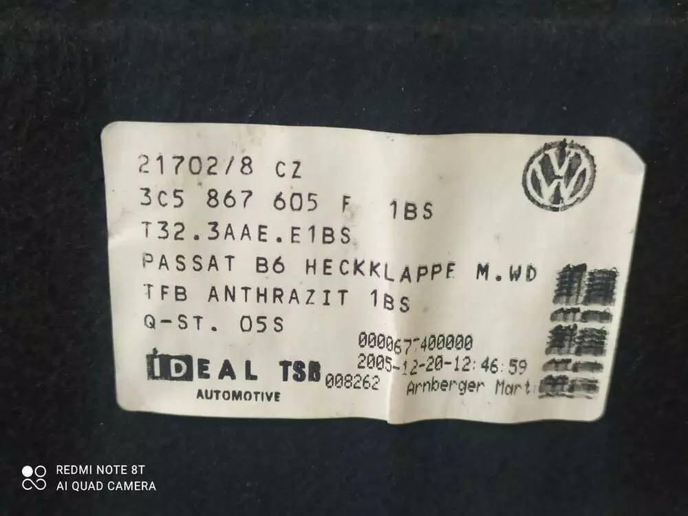 Обшивка кришки багажника 3C5867605F VW Б 6 Європа