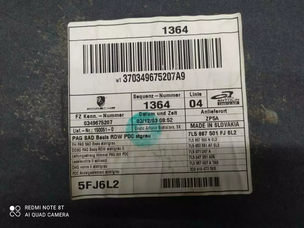 Потолок 7L5867506N PORSCHE CAYENNE PORSCHE