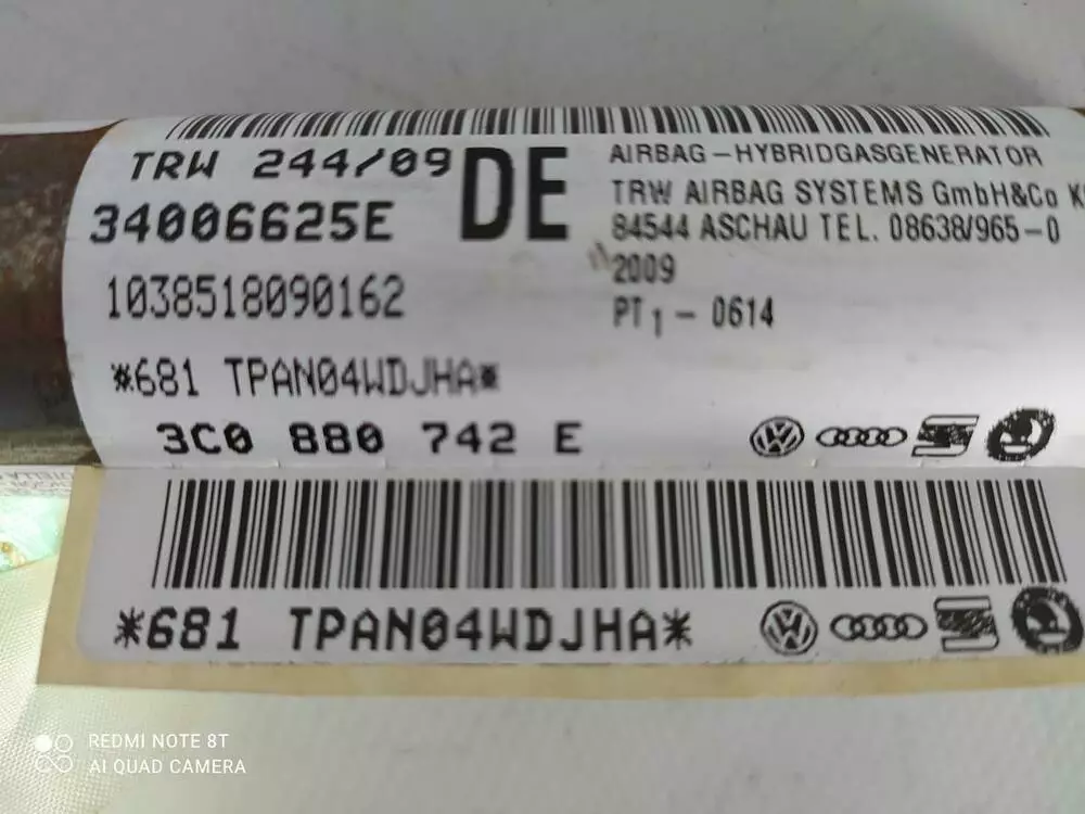 Шторка безпеки (права бокова) 3C0880742E VW Б 6 Європа