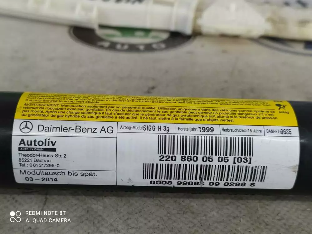 Шторка безпеки (ліва бокова) 2208600505 Mercedes S-220