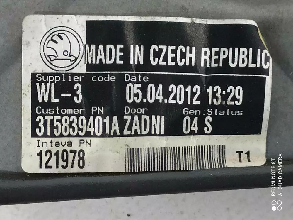 Склопідіймач (лівий, задній) 3T5839401A СуперБ 2
